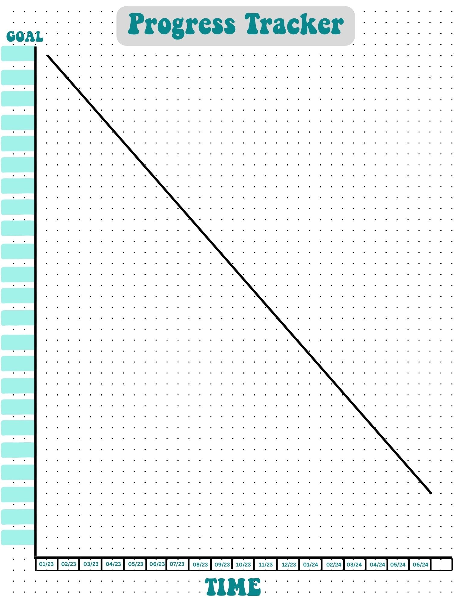 Included are two different trackers--one with a sixteen month timeline (1/23 - 6/24) and one blank with dates to be filled in.